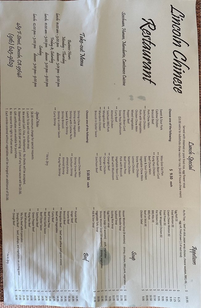 Lincoln Chinese Restaurant Menu (Update 2025)
